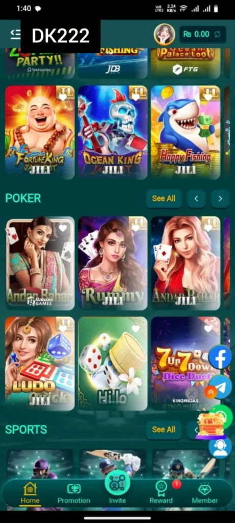 Playing the DK222 Game is easy and beginner friendly. After opening the application, you will see the main dashboard where different games are available. Players can choose any game they like from the list.